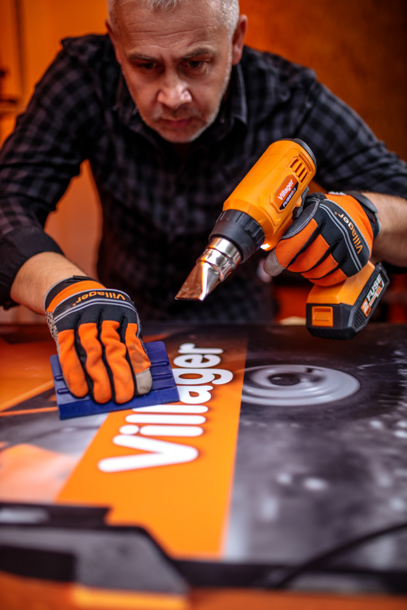 Uređaj je u okviru nove Villager serije uređaja VILLAGER® FUSE™ serije aku alata. Čitava VILLAGER® FUSE™ serija uređaja je okupljena oko jedne baterije i punjača, tj jednu bateriju možete koristiti na svim uređajima iz FUSE aku serije alata. Villager® FUSE™, nova linija proizvoda je opremljena naprednim PC boardom, koji pruža visok nivo zaštite i sigurnosti baterije i samog uređaja. Indikator problema koji je sastavni dio PCB-a štiti uređaj od prekomernog punjenja i pražnjenja, zagrevanja i oscilacija napona. Upotrebom samo jedne baterije i punjača lakše ćete organizovati i Vaš radni prostor. Manje baterija i punjača znači odmah svakao i manju upotrebu sirovina i manju proizvodnju električnog otpada. Napredna tehnologija i pravilna upotreba i održavanje garantuju dug životni vijek uređaja i baterije. Odsustvo strujnog kabla garantuje veću slobodu pokreta u radu. Fuse 18V baterije su zasnovane na Li-Ion tehnologiji i do tri puta dugotrajnije u odnosu na Ni-Cd baterije sličnih karakteristika. Fuse 18V bateriju možete odložiti na nekoliko mjeseci bez bojazni da će doći do pražnjenja i gubitka snage. Ove baterije pokazuju gotovo identične performanse na početku i kraju svog radnog vijeka. Bateriju možete puniti bilo kada i bez obzira na stepen ispražnjenosti i bojazni od gubitka kapaciteta. Kupovinom jedne baterije (u nekim slučajevima dvije-ukoliko mašina koristi dvije baterije) i jednog punjača štedite pri kupovini svakog sledećeg FUSE alata, jer ćete kupiti samo alat (bare tool) i time izbjeći nepotrebne troškove kupovine novog seta baterije i punjača, a samim tim i uštedjeti na prostoru u Vašoj radionici. Villager FUSE VLN 9520 je industrijsko sušilo prikladno za poslove u radionici i domaćinstvu, kao alatka koja je neophodna za pripremu radnih površina. SOLO MODEL – aku bušilica se isporučuje bez baterije i punjača